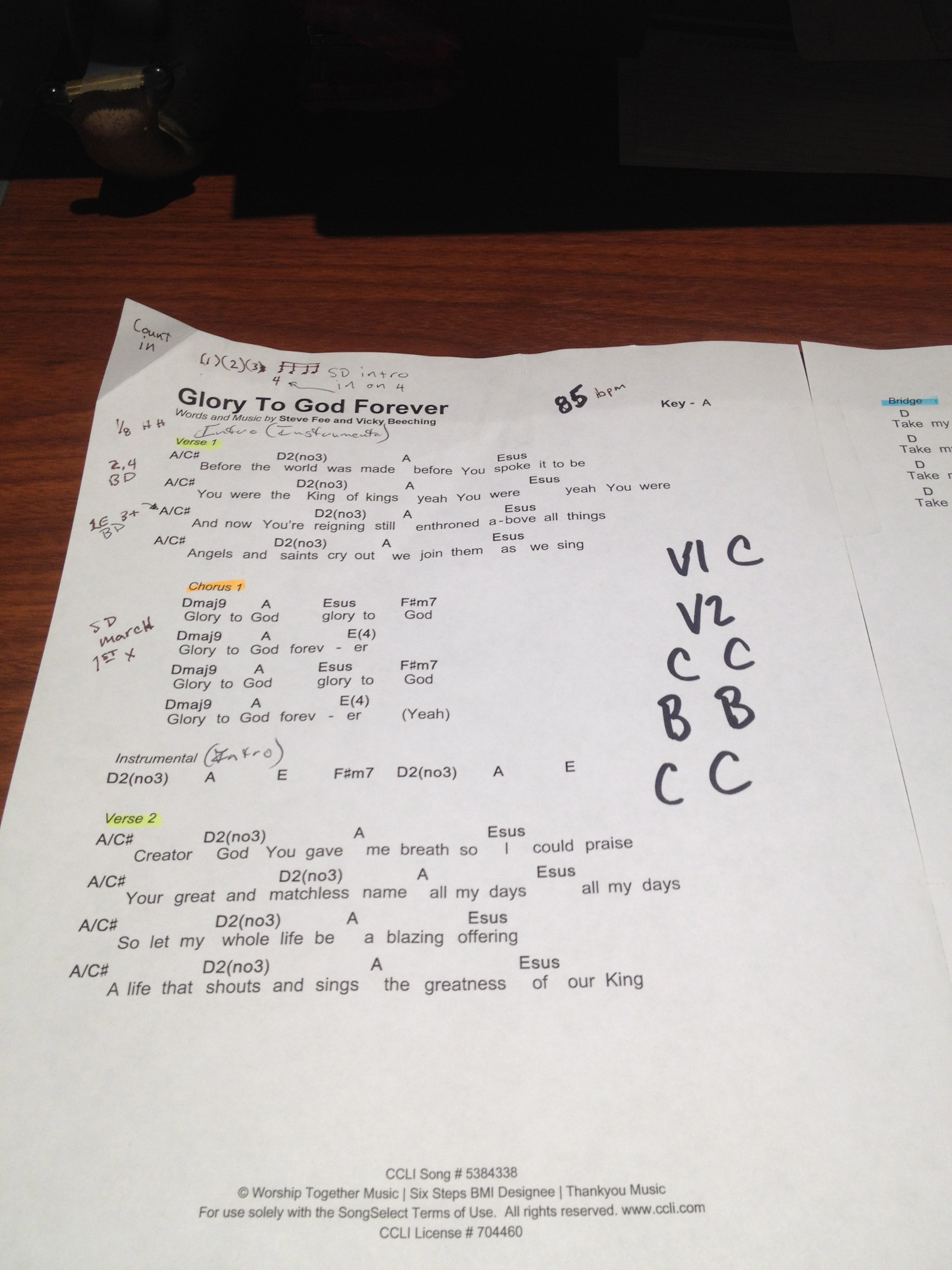 Making notes on chord charts.