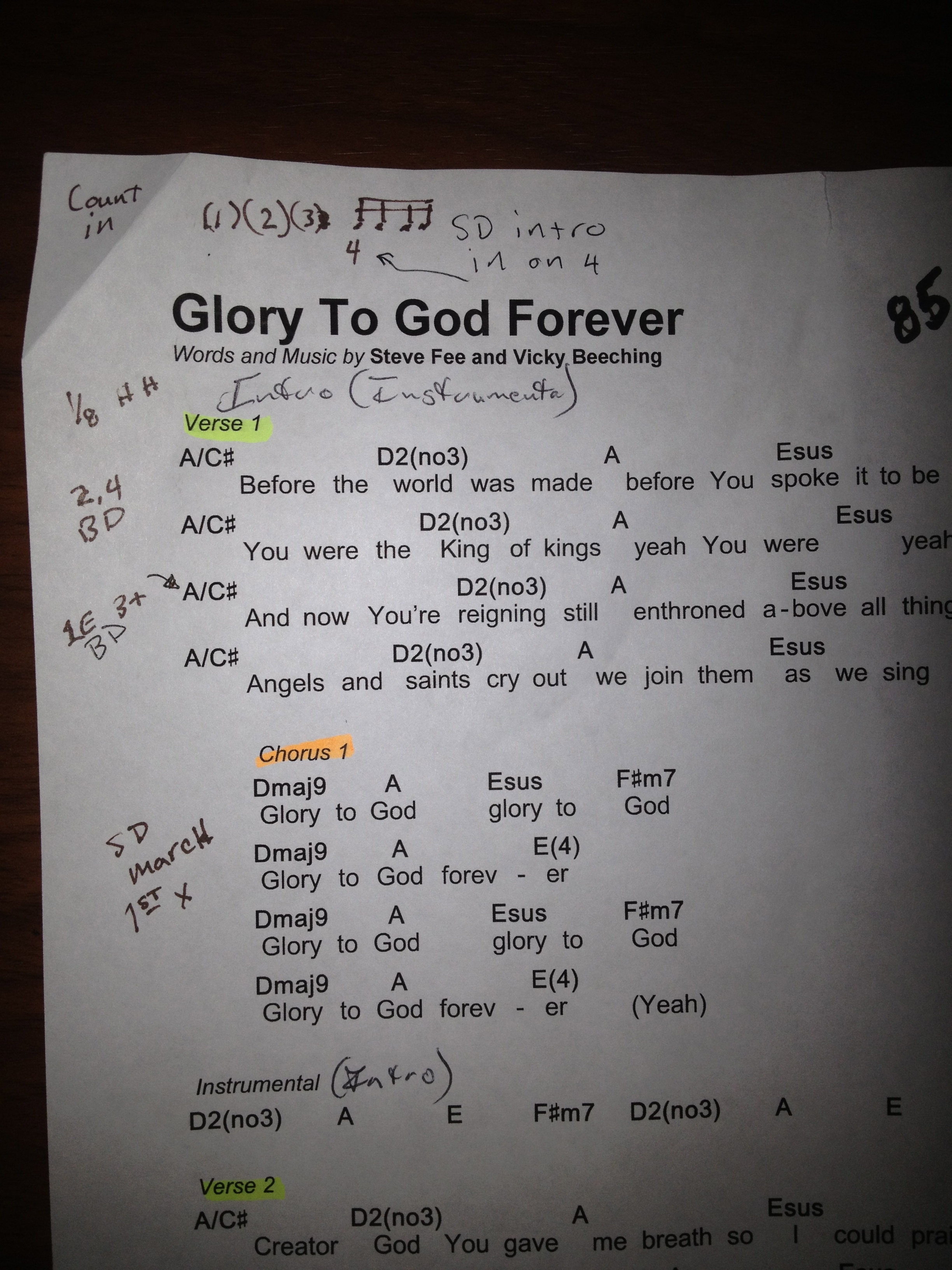 Making notes on chord charts.