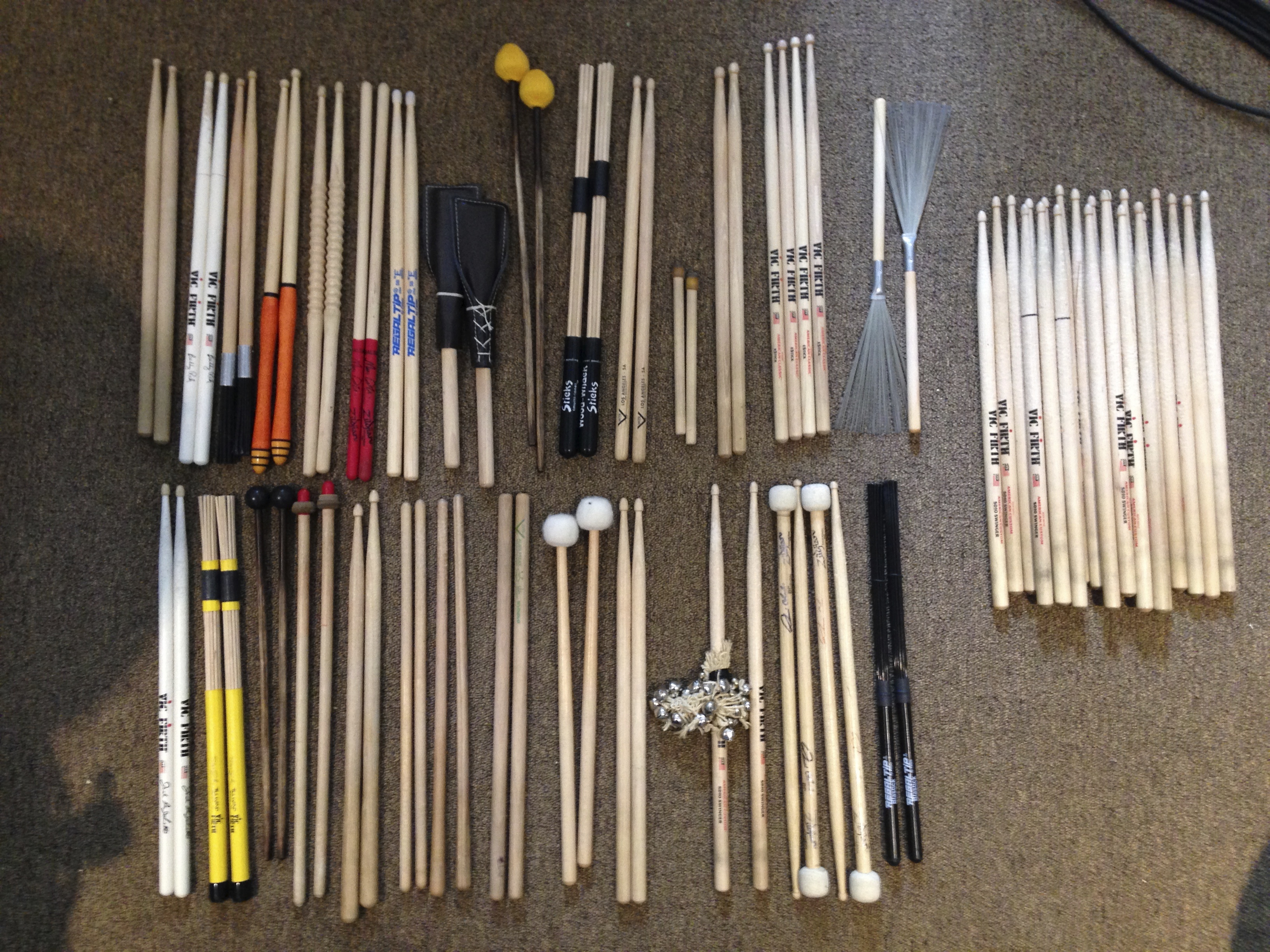Are you ready? Yes, those are all the drumsticks that I currently own and they represent only 1/3 of all the drumsticks I have owned in the 30 years that I have been playing drums. If you’re asking yourself, “Why does he have so many different sticks?”, the answer is that over the years I’ve played many different styles of music in worship ministry and some of those songs required different feels, effects, and sounds. Having sticks that are comprised of various shapes, sizes, and materials (I call them secondary sticks) can accomplish those sonic goals and are a must for your stick bag. But, choosing the right primary drumstick has at times seemed like a never ending journey for me. I liken this search to guitar players who are constantly trying to find the “perfect tone” by constantly switching out amplifiers, speaker cabinets, and effects pedals.