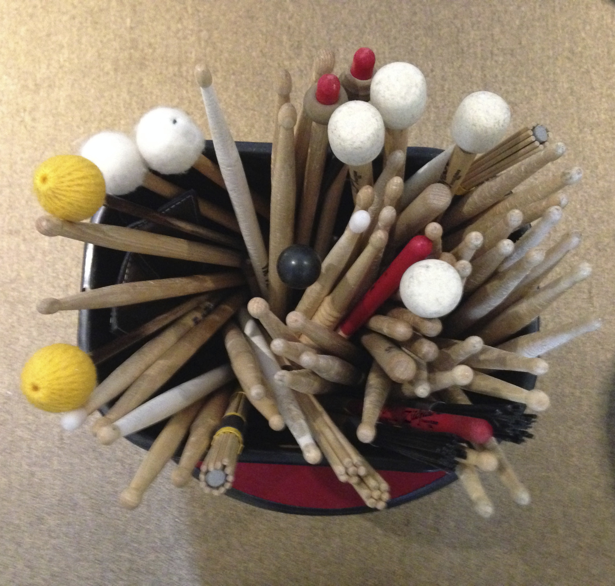The next major consideration when choosing a primary drumstick is the shaft diameter and total stick length. You will notice that many drumsticks will have labels comprised of a letter and a number such as 2B, 5A, 7A, 5B. So, what’s with this drumstick alphanumeric labeling system anyway? At one time, it seems that there was a standard among drumstick manufacturers. The number represented a uniform diameter. Low numbers represented large diameters and as the numbers increased the diameter decrease. The letter was meant to represent the musical application. For instance, “B” represented “band” and “A”represented “orchestra”. Somewhere along the line of drumstick manufacturing history that all went out the window.