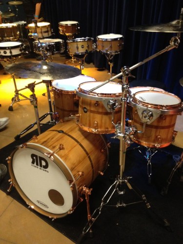 These drums were over laid with oak strips that were stained to look aged. The copper was unsealed so that over time it would patina. Reply